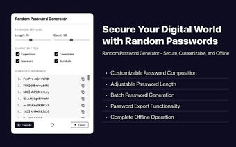 Les exigences du système d'exploitation de Random Password Generator ne sont pas disponibles pour le moment. La version actuelle du logiciel est 1.0.